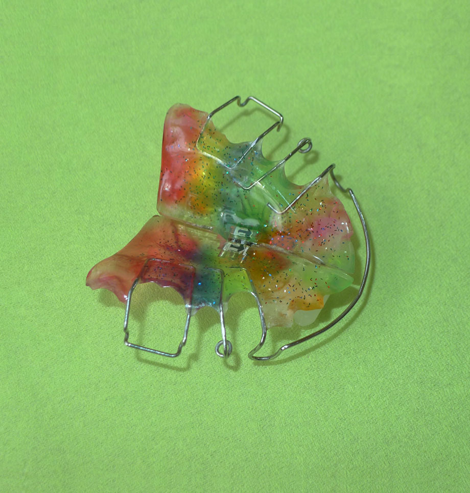 Herausnehmbare Zahnspangen werden in der Frühbehandlung und in der orthopädischen Phase eingesetzt. Sie korrigieren Form und Größe der Kieferbasis.